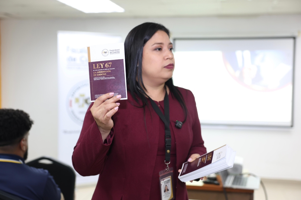 Saray Perea, auditora forense de la institución, llevó a cabo la jornada de instrucción, donde abarcó una serie de temas referentes a esta jurisdicción como las diferencias entre empleado y agente de manejo, las normas de control interno gubernamental, los protagonistas dentro de un proceso patrimonial y las facultades que otorga la ley a la Fiscalía General de Cuentas para el inicio de las investigaciones.