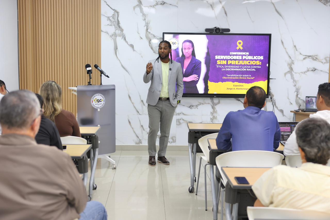 Jorge Montenegro, gerente cultural de Municipio de Colón, detalló en su conferencia los factores que inciden en este trato desfavorable e injusto a las personas o grupo, sobre todo en actos de intolerancia, causados por el origen étnico racial y el género en la esfera laboral gubernamental.