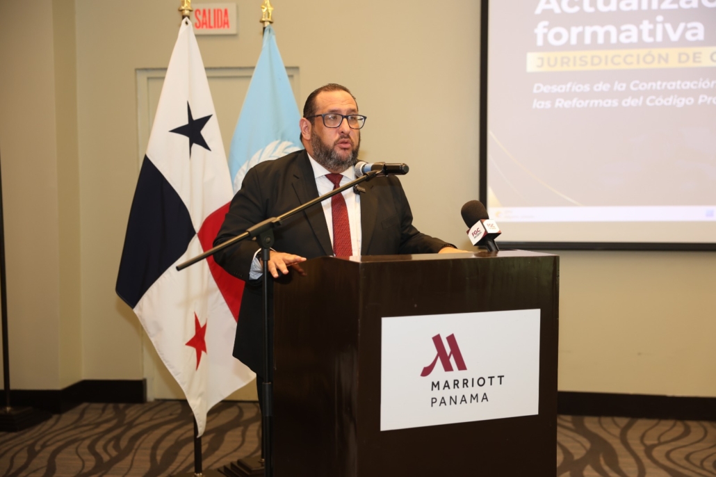 Anabelle Padilla, asesora legal de Ministerio de la Presidencia; Onofres Rivas de la Dirección General de Contrataciones Públicas; Helmut Flores de la UNODC y el jurista Ricardo Fuller conformaron la carta de expositores de esta tercera capacitación que se lleva a cabo con apoyo del organismo regional.